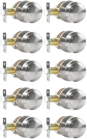 Passage Door Knobs, 10 Pack Satin Nickel Door Knobs, for Hallway & Closet Non-Locking Interior Round Door Handles Keyless Reversible for Left Right Handed Doors