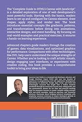 - "Complete Guide to HTML5 Canvas with JavaScript" is your comprehensive resource for unlocking the power of the Canvas API in web development. Designed for developers of all skill levels, this book takes you on an exciting journey through the versatile world of Canvas, starting from the fundamentals and progressing to advanced techniques. Whether you're creating static graphics, designing interactive applications, or developing complex animations, this guide will equip you with the tools and knowledge to bring your creative visions to life.Starting with the basics, the book introduces the HTML5 Canvas element, covering how to set it up and use it effectively in your projects. You'll learn how to configure Canvas dimensions, manage drawing contexts, and understand the difference between Canvas and other technologies like SVG. Step-by-step examples and exercises walk you through drawing simple shapes, working with paths, and using styles like gradients, patterns, and colors to enhance your graphics.As you progress, the book dives into essential techniques for building dynamic and interactive applications. Discover how to render text, create transitions, and handle user interactions through mouse and keyboard events. Explore the principles of animation, from managing the frame rate to crafting fluid motion using the requestAnimationFrame API. With these foundational skills, you'll be ready to tackle more advanced projects like data visualizations, gaming, and real-time rendering.Learn how to optimize your graphics for high-resolution displays, such as Retina screens, by leveraging the device pixel ratio. Explore techniques for managing large datasets and ensuring smooth performance in interactive applications. Special sections delve into state management, transformations, and layering, giving you precise control over your Canvas projects.The book doesn’t stop at 2D graphics; it introduces WebGL for developers looking to explore 3D rendering on Canvas. You'll gain insights into how WebGL extends the capabilities of Canvas, enabling you to work with shaders, textures, and real-time lighting effects. A detailed comparison between SVG and Canvas helps clarify when to use each technology, empowering you to make informed decisions based on your project's needs.To solidify your learning, the book includes numerous hands-on exercises and challenges. From drawing basic shapes to coding a fully functional game, each chapter offers opportunities to apply your skills in real-world scenarios. Explore fun projects like creating a bouncing ball animation, designing a custom chart, or developing an interactive drawing tool. Clear explanations, annotated code samples, and troubleshooting tips make it easy to follow along, even if you're new to JavaScript or Canvas.One of the highlights of this guide is its focus on practical applications. The Canvas API is not just a tool for developers—it's a playground for creativity. The book demonstrates how to combine programming with design, enabling you to create visually stunning and interactive experiences for the web. Whether you're building data dashboards, enhancing user interfaces, or crafting artistic visuals, the lessons in this book will inspire your imagination and expand your skill set.By the end of the book, you will have a thorough understanding of how to use HTML5 Canvas effectively, with the confidence to tackle projects ranging from simple prototypes to full-scale web applications. Whether you're a hobbyist exploring creative coding or a professional developer seeking to broaden your expertise, this book is your gateway to mastering Canvas and transforming your ideas into reality.Prepare to enter a world where code meets creativity. "Complete Guide to HTML5 Canvas with JavaScript" you learn how to harness the full potential of the Canvas API and JavaScript, pushing the boundaries of what’s possible on the web.