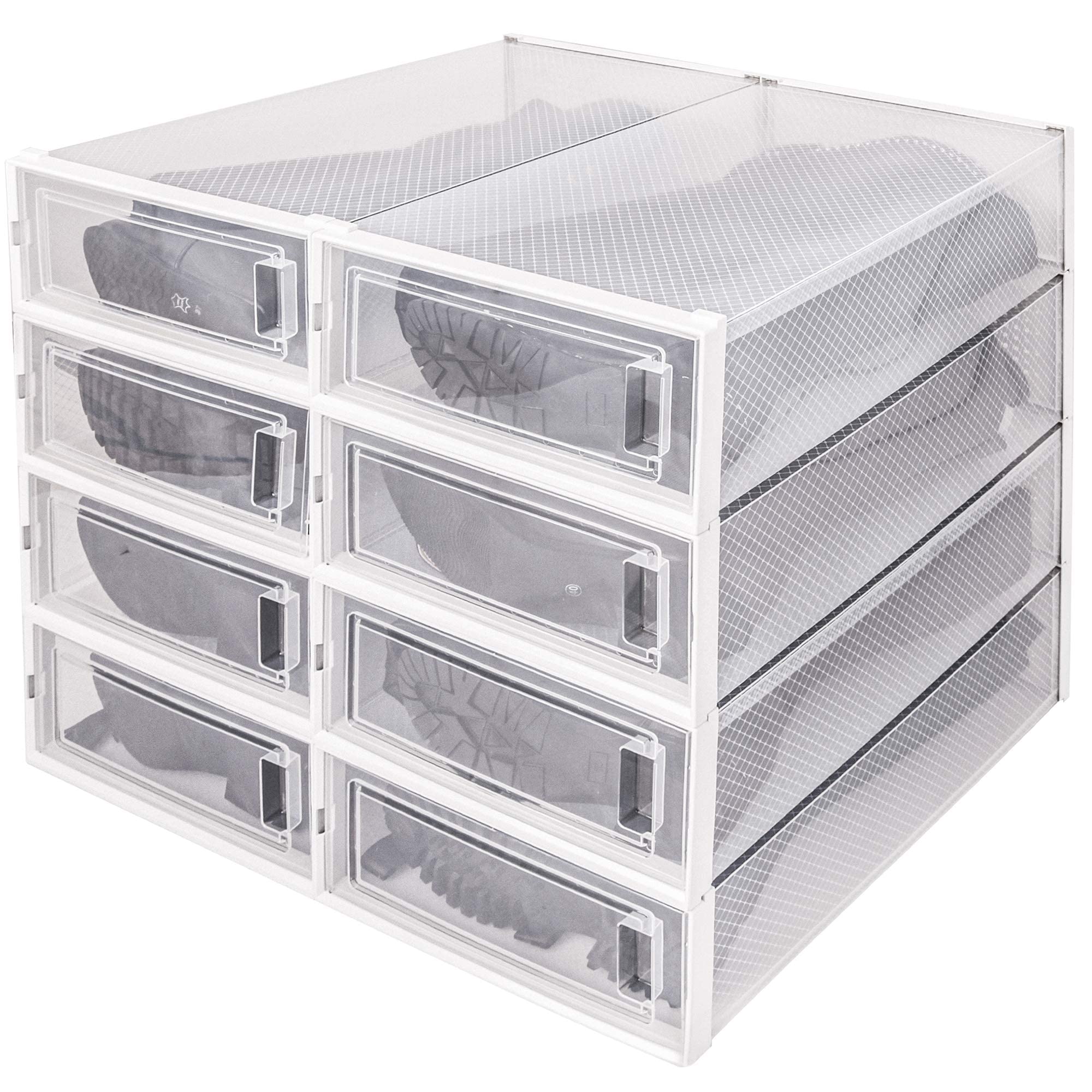 PARANTA 8-Piece Boot and Shoe Storage Box, Stackable Clear Plastic Shoe Box, Space-Saving Shoe Organizer for Boots, Sneakers, and High Heels, Clear