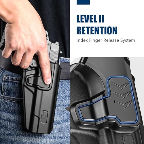 - Secure Level II Retention with Index Finger Release: Stay locked in place until you’re ready to draw. The intuitive index finger release offers a safe, smooth, and fast access without compromising control