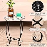 Did you need some tables to set drinks on out on your poolside, deck or yard? This outdoor side tables is a perfect addition to your patio lounge and complements the garden seating area. Without a doubt, it's a great choice for poolside, porch, yard, deck or living room couch. Just add a cup of coffee and your favorite magazine, then you have the perfect relaxing time. Also as plant stand for indoor outdoor Versatile Side Table: Our 14" round outdoor side tables with exquisite pattern design top serve as both a functional and decorative piece for your home. Use it as an accent table to showcase your decor items or as an outdoor table to hold drinks and snacks during those summer evenings. Worked for what you wanted it for. Keep Balance and Stable Enough: Made from high-quality metal, the outdoor side tables can hold up to 200 lbs. The four legs are welded with x-shaped rods to ensure stability and durability. They are designed to withstand outdoor conditions and last for years to come. Perfect Size to Any Space: These patio side tables are perfect for small spaces, making them ideal for balconies, patios, or even indoor use. Their compact size (14" diameter, 17" tall) allows for easy placement and versatility in any area. Screw fastened make it easily assembly and easily moved. Multifunctional Multifunctional and Practical: Use these outdoor side tables as patio end tables, outdoor accent tables, beside night stand table, or even as plant stands for indoor use. Their versatility makes them an essential piece for all your outdoor and indoor needs.and Practical: Use these outdoor side tables as patio end tables, outdoor accent tables, beside night stand table, or even as plant stands for indoor use. Their versatility makes them an essential piece for all your outdoor and indoor needs.