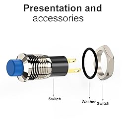 - DIYhz Push Button Switch, Self Locking Mini Switches Latching 10mm Round DC24V 0.5A Blue Cap 5PCS