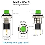 - DIYhz Push Button Switch, Self Locking Mini Switches Latching 10mm Round DC24V 0.5A Green Cap 5PCS