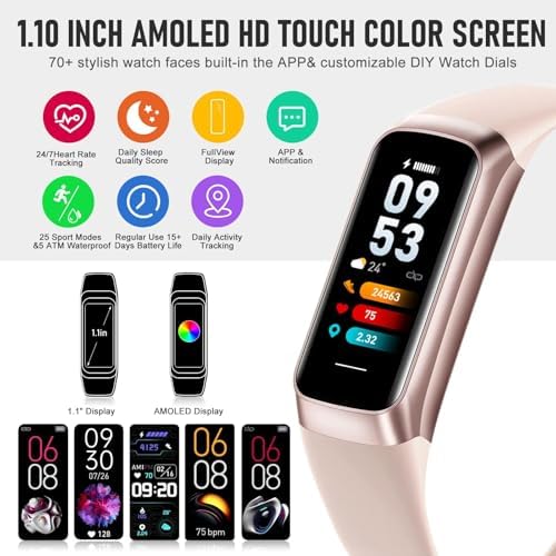 • 【1.10 Inch Display & Custom Watch Face】 Fitness tracker with AMOLED HD Touch Color Screen design, an exquisite visual display, provide you with high-quality touch and visual experience, making all incoming calls and message reminders extremely clear, enjoy a wonderful view.