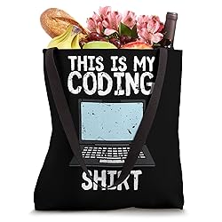 Grab this funny "This Is My Coding Shirt" Art for your programmer nerd dad, mom, husband, brother, friend or relative! It's the perfect geek gift idea & present for birthday, father's day And mother's day! 16” x 16” bag with two 14” long and 1” wide black cotton webbing strap handles. Made of a lightweight, spun polyester canvas-like fabric. All seams and stress points are double-stitched for durability, and the reinforced bottom flattens to fit more items and hold larger objects. Spot clean/dry clean only.