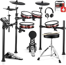 - Wireless Playback & Smart Connectivity: Jam along with your favorite songs wirelessly, streaming directly from your phone or tablet through the drum module. Expand your skills with USB-MIDI output, connecting seamlessly to drum learning apps like Melodics and Drumeo or music production software such as GarageBand and Ableton Live. Enjoy the perfect blend of wireless freedom and professional-grade connectivity for drummers who want to play, learn, and create without limits.