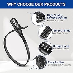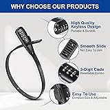 VERSATILE & MULTI-PURPOSE SECURITY – The SCMEGA Zip Tie Lock provides reliable security for bikes, helmets, skateboards, skis, luggage, strollers, cabinets, , gates, and more. Perfect for short-term stops, home use, or travel, this adjustable combo cable lock offers flexible protection wherever you go. Note: Not suitable for high risk area. ADJUSTABLE & KEYLESS CONVENIENCE – Featuring a 3-digit resettable combination, this zip tie bike lock allows easy customization while eliminating the hassle of lost keys. The adjustable strap mini lock allows you to tighten the zip lock to any desired size, and secure various items with a snug fit, making it an ideal lightweight security solution. DURABLE & WEATHER-RESISTANT – With a robust stainless steel core and protective plastic coating, this zip tie combo cable lock resists cutting, rust, and wear. Suitable for both indoor and outdoor use, this zip tie combination lock offers flexibility for different uses. COMPACT & TRAVEL-FRIENDLY – Measuring 22”(L) x 0.47”(W) x 0.22”(H), this small bike lock is portable, and easy to store in backpacks or attach to bikes and luggage. The self-sealing plastic bag packaging includes a simple instruction manual for quick setup. PORTABLE & EASY TO USE – Despite its compact size, this zip tie strap lock secures items with up to 400 lbs of force. Ideal for bike security, cabinet locking, or café stops, it offers peace of mind with a practical, easy-to-use design.