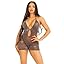 Caress your curves in this ultra-flattering shimmer sheer lingerie dress by Leg Avenue. Featuring a plunging halter neckline and keyhole accent, flirty open back with an adjustable tie closure, and hand-laid rhinestones for some extra drama, this jaw-dropping sexy lingerie look will have all eyes on you. Thong panty not included. Package includes: mini dress Sexy lingerie dress Stretchy, breathable see-through lingerie fabric Curve-hugging shimmer lurex Hand-laid rhinestones Plunging halter neckline Open back Hand wash cold, Do not bleach, Drip dry Final sale