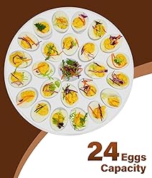 • Deviled Egg Platter 2PACK, Deviled Egg Trays with 24 Slot Each, Egg Container for Party Display, Portable Easter Egg Holder, Dishwasher Safe Melamine, 12inch Diameter