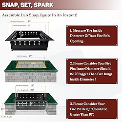Durable Carbon Steel Construction: Made from high-quality carbon steel, this smokeless fire pit insert is engineered for superior durability and long-term reliability, ensuring it lasts for years of outdoor enjoyment. Smokeless Feature: Designed to minimize smoke, this bonfire fire pit ring creates a cleaner, more enjoyable atmosphere, enhancing the experience for you and your guests. Heat-Resistant Finish: Designed for outdoor use, this fire pit ring features a robust heat-resistant coating that shields against rust, corrosion, and intense heat, ensuring long-lasting durability. Improved Combustion with Air Vents: Featuring strategically placed air vents, this fire pit insert promotes optimal airflow, enhancing combustion efficiency and providing a steady, consistent flame for a better fire experience. Easy DIY Installation: Designed for effortless assembly, this fire pit insert allows you to create your own outdoor fire pit ring with no need for professional assistance.