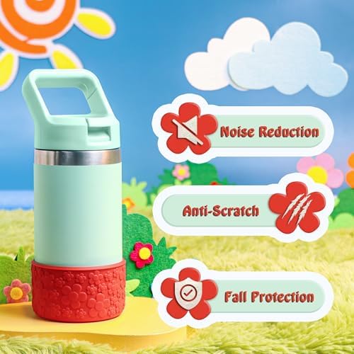• Adorable Five-Petal Flower Design: This silicone boot features a 3D five-petal flower design, making it a cute choice for kids. This silicone bottle boot is available in five vibrant colors, closely matching the colors of Yeti Rambler Jr bottles 12 oz & 18 oz, adding a playful and charming touch to your water bottle