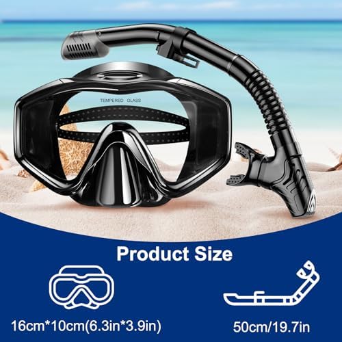 Snorkel Set Adults, Anti-Fog Panoramic Scuba Snorkelling Packages with Dry-Top Snorkel & Swimming Goggles for Diving, Swimming & Snorkeling
