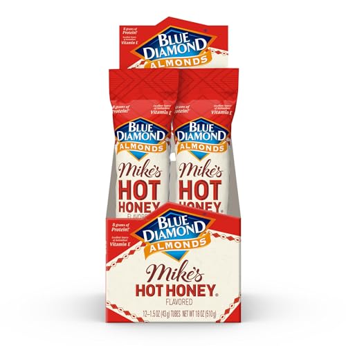 Blue Diamond Almonds, Made with Mike’s Hot Honey Infused with Chilies for a Perfect Sweet and Spicy Snack Nut Combination, Pack of 12, 1.5oz. Servings