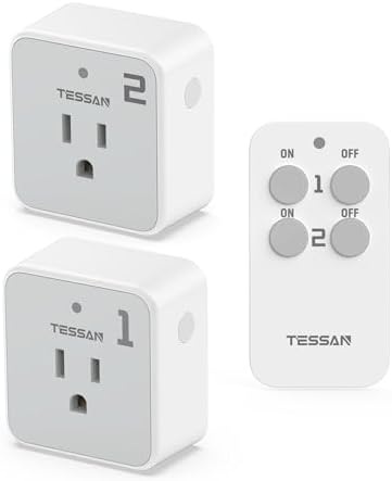 Remote Control Outlet Plug, TESSAN Wireless Light Switch Kit 100ft RF Range, On Off Switch for String Lights, Lamps, Small Appliances, Wireless Power Socket, 15A/1875W (1 Remote and 2 Outlets)