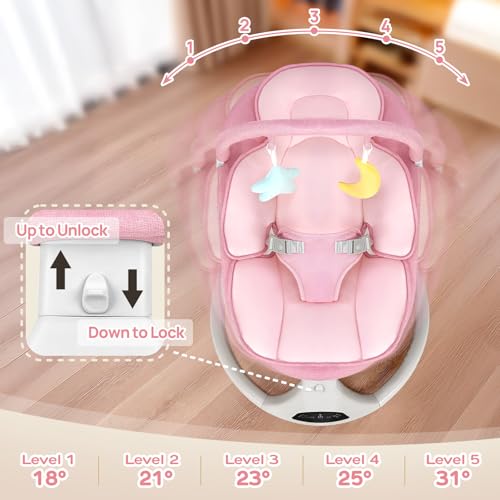 - Comfortable Technology:5 ultra-gentle motion settings (not abrupt swings!) designed to support posture. Auto-adjusts to baby’s movements for natural rocking.