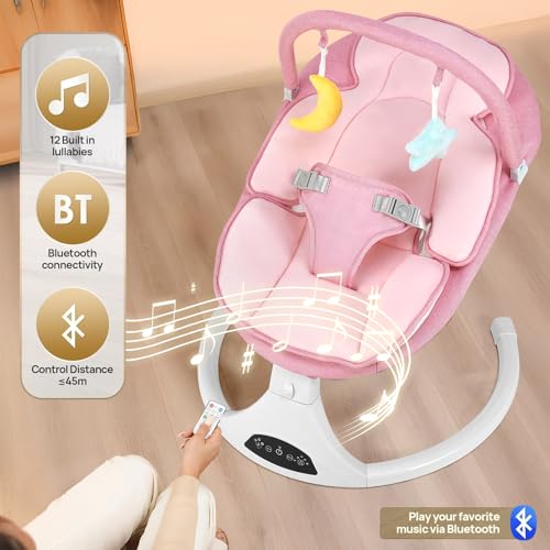 FEITIONG Baby Rocker|Bluetooth Baby Swing 5-Speed Motion & Comfort Design | Portable Infant Chair with Machine-Washable Seat (0-12M, 20lb)