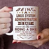 - Being a Linux System Administrator Is Easy 11oz White Ceramic Mug: Monizilucky creates unique funny coffee mugs which make great Birthday gift ideas for men, Birthday gift ideas for women, Valentine’s Day gift ideas, Mother’s Day gift ideas for Mom from Daughter or Son, Father’s Day gift ideas for Dad, Anniversary gift and Christmas present ideas for him or her. This funny coffee mug is made out of high quality ceramic. If you're shopping for a gift, you've found the one. Have a great gift delivered to their door, on-time in a nice gift box. This is the perfect mug for you or for someone you want to bring a smile to. A perfect size mug you can drink tea, soup or coffee out of. ● Printed in the USA ● Worldwide shipping ● Print type: Sublimation printing ● Material: Ceramic ● Color: White ● Sizing: 11oz ● Printed on both sides.