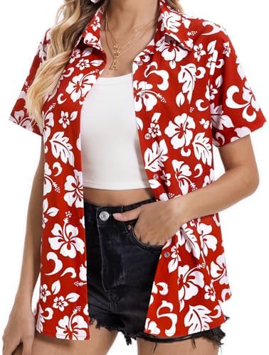 Hawaiian Shirts for Women Tropical Shirt Summer Beach Button Down Short Sleeve Blouses Floral Top Aloha Luau Outfits 2025