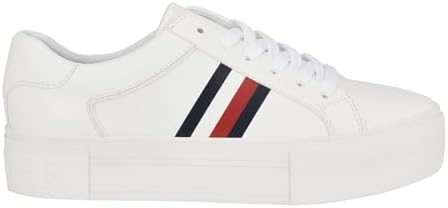 The Tommy Hilfiger Belvie women's lace up platform sneaker is stylish yet comfortable. The branded signature ribbon will add a touch of sporty glamour to almost any look and will be a great addition to your wardrobe. It is fun to dress it up or down to complete any look!