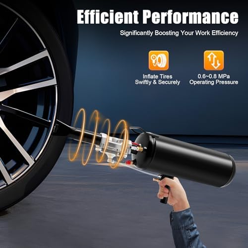 - Thoughtful Design: With an ergonomic comfortable handle, the tire inflator tool is easier to operate, and effort-saving to hold. The unique long-shaped neck design can reach out and ensure that you are at a safe distance.