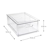 Smart Design Pull-Out Stackable Storage Bin with Removable Dividers - Large - 13.75" D x 9.85" W x 5.30" H- Clear