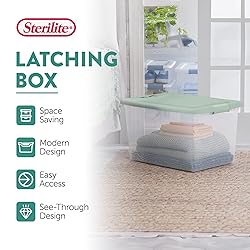 Dimensions & Size: The storage boxes have outside dimensions of 23 3/4" x 16" x 13 1/2" and interior dimensions at the bottom of 19 3/8" x 13 1/8" x 13", making them ideal for storage needs Versatile & Convenient: Sterilite's Latching Boxes are ideal for storage needs throughout the home. Whether it's organizing your closets, bedrooms, or pantries, these boxes provide a durable and secure solution Effortless Access: The innovative latch designs enable the lids to lift smoothly, as if they were hinged, allowing for easy one-handed access to your stored items Space-Saving & Stylish: Designed with efficient shapes and modern styling, these containers save valuable space while adding a touch of contemporary flair. Clear bases for quick viewing of contents and recessed lids for stacking Sterilite products are proudly made in the USA since 1939 and are BPA and phthalate-free