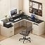 - [EASY TO ASSEMBLE]: Overall size of this L shaped desk: 58.2"(D) x 63.0"(W) x 34.8"(H). All labeled parts, tools, and detailed instructions needed are included in the package, which makes the assembly of this corner desk with storage easier. If you have any questions about it, please feel free to contact us