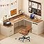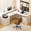 - [MULTI-FUNCTIONAL STORAGE]: Features with 1 printer shelf, 2 storage drawers and 1 open shelf, and 1 Storage Cabinet with adjustable shelves, this L-shaped executive desk provides a nice amount of storage for all kinds of your items: your books, files, and other supplies, which can maximize your space and meet your various storage needs