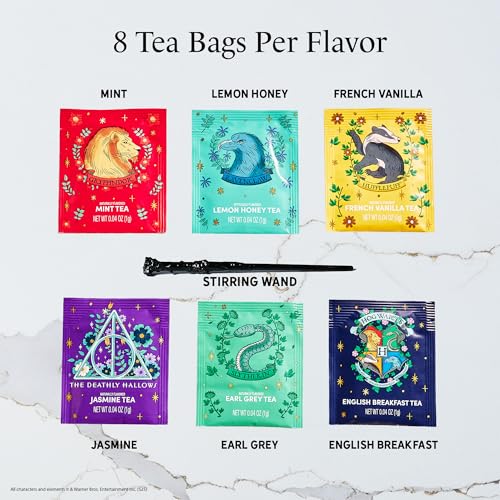 HARRY POTTER, Tea Gift Set, Includes Stir Wand and 48 Tea Bags in 6 Flavors, HARRY POTTER Gifts Tea Box with Both Green Tea Bags and Black Tea Bags