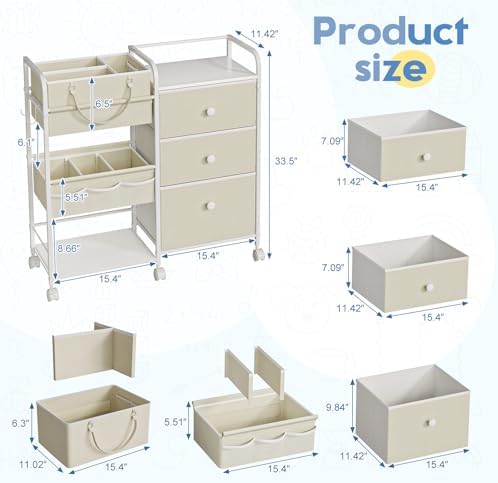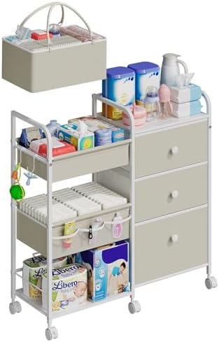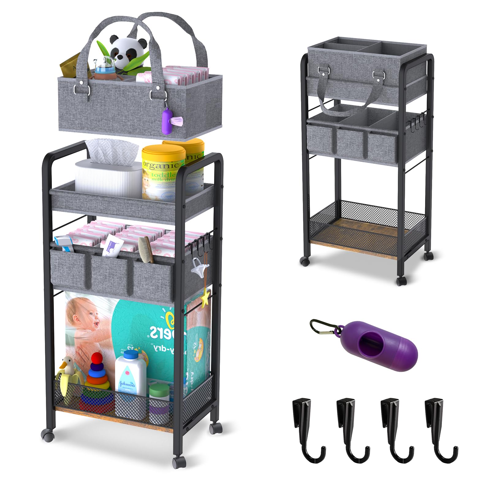 - [Effortless Assembly]This rolling diaper caddy is the ultimate companion for new moms and babies, designed to grow with your family. More than just a baby storage organizer, it’s a versatile solution for a wide range of household needs—from book and toy storage to clothing, kitchen essentials, cosmetics, and more. Easy to assemble, this baby diaper organizer cart is ready to use in minutes, making it a practical and stylish addition to any room.