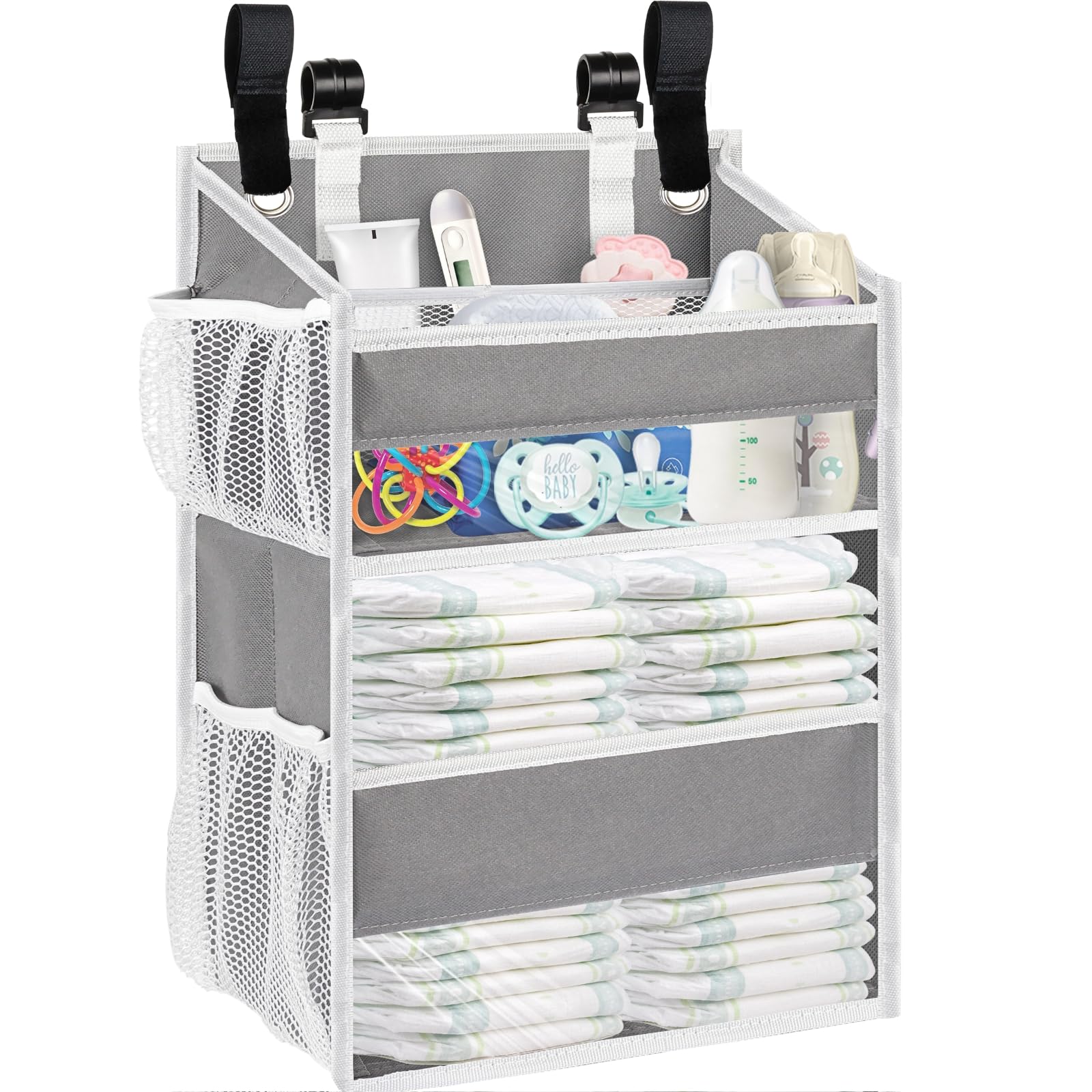- [2 in 1 Design]Designed for ultimate convenience, this diaper caddy cart features a removable diaper caddy that allows you to take essentials with you wherever you go. Whether you’re in the nursery, living room, or out for a day trip, this diaper cart ensures you’re always prepared. This diaper caddy cart features removable dividers and Velcro straps on both tiers, allowing you to create custom compartments tailored to your needs, you can easily adjust the layout to fit your items perfectly.