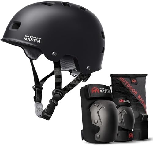 OutdoorMaster Skating Protective Gear Set - Skateboard Helmet Knee and Elbow Pads with Wrist Guards