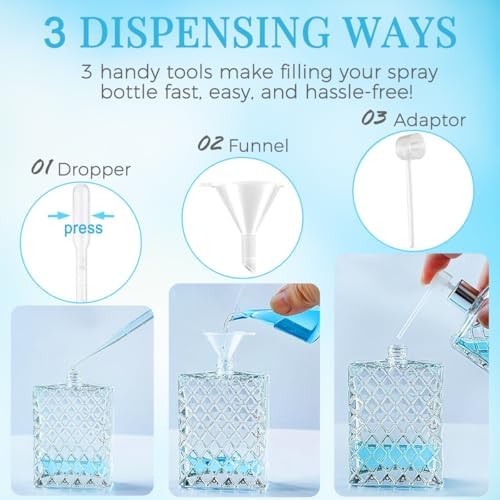 - 𝙀𝙛𝙛𝙤𝙧𝙩𝙡𝙚𝙨𝙨 𝙍𝙚𝙛𝙞𝙡𝙡𝙞𝙣𝙜 – This refillable perfume bottle comes with a funnel, dropper, and refill pump for quick, mess-free transfer, minimizing waste and preserving the quality of your fragrance. Whether refilling perfume bottles empty refillable or transferring cologne, this set ensures precision and ease.