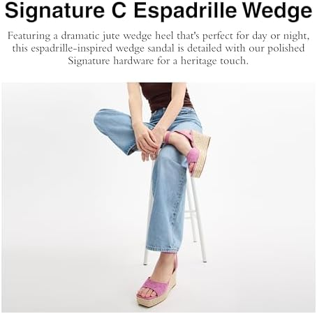 Featuring a dramatic jute wedge heel that's perfect for day or night, this espadrille-inspired wedge sandal is detailed with our polished Signature hardware for a heritage touch. The square-toe wedge silhouette is finished with an ankle-wrap buckle closure and a rubber outsole for added traction. Signature jacquard and leather upper, man-made leather lining and footbed, rubber outsole, buckle closure, 2 3/4" heel.