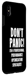 Perfect for specialists enhancing AI system performance, reducing latency, and improving efficiency. A funny and unique gift idea for optimization experts - "Don't Panic! I'm A Professional Performance Optimization Specialist". Two-part protective case made from a premium scratch-resistant polycarbonate shell and shock absorbent TPU liner protects against drops Printed in the USA Easy installation