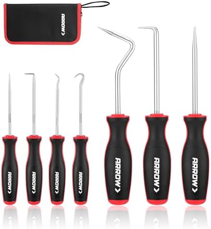 ARROW 7-Piece Hook and Pick Set with Storage Bag, Long & Mini Precision Pick Tool Set for Automotive Mechanic, O-Ring Removal Tool, Oil Seal, Gasket Puller, Hose Puller Picks