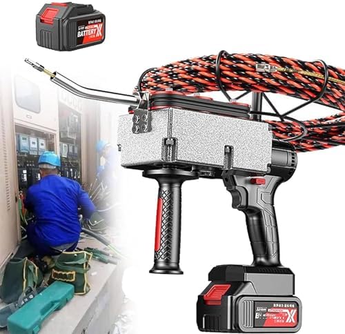 - BRUSHLESS MOTOR: The threading tool uses a powerful brushless motor, and the turbine housing uses a patented pure copper turbine housing, which dissipates heat faster, is wear-resistant, and can withstand high temperatures of 200 ° C. 300 pounds of super strong pulling force, saving time and effort, high-strength and strong alloy steel connecting cable
