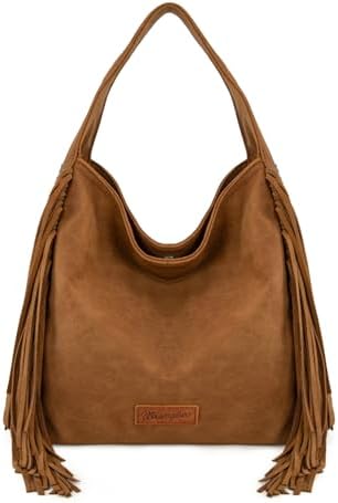 Wrangler Fringe Suede Hobo Bag for Women Leather Western Fringe Purse Tassel Hippie Shoulder Bag