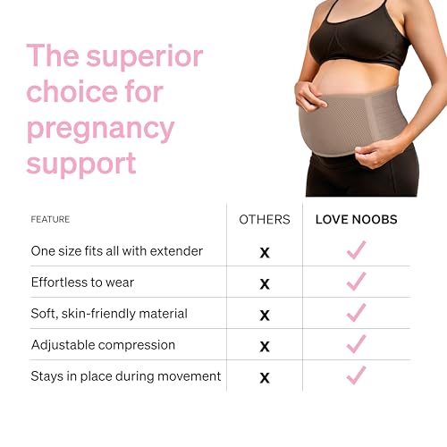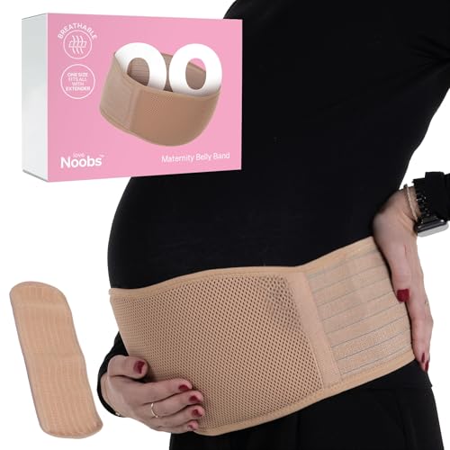 Pregnancy Belly Band with Extender by LoveNoobs™, Adjustable One Size Fits All Maternity Belly Band, Back and Pelvic Support, Breathable Mesh, Nude