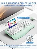Wireless Keyboard and Mouse Combo, Wave Keys Computer Ergonomic Keyboard with Cushioned Plam Rest, Phone Holder, 2.4GHz Silent 6 Button Wireless Mouse Set for Laptop, PC, Windows, Mac (Mint Green)
