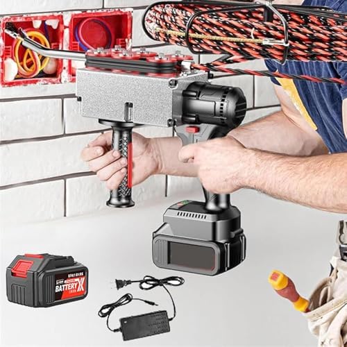 Fully Automatic Power Pipe Threader Lithium Battery Threading Machine Cable Automatic Wall Connection Wire Rechargeable Wall Threading Machine for Electrician,30mline-25000mAh