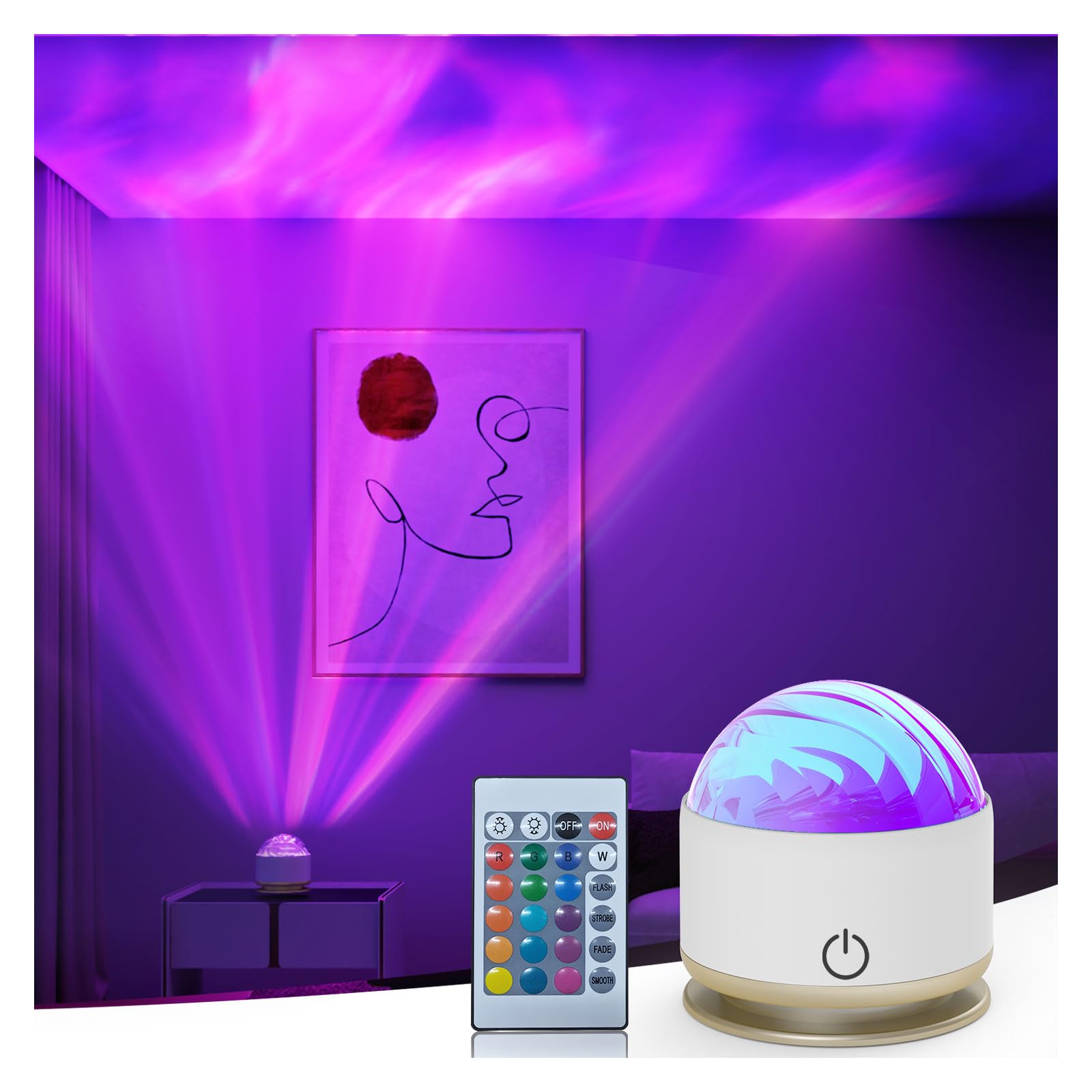 - 【Magical Northern Lights Pojector with 16 Colors】 The romantic northern lights projector night light offers 16 vibrant color options and an incredible 640 flashing modes to perfectly match any mood or occasions. The rotating water ripple effect of the galaxy projector for bedroom decor provides soft lighting while projecting flowing, water ripple patterns onto the walls and ceiling. This ambient lighting creates a calming, immersive experience, aurora light projector making you feel like you’re transported to the world of the Northern lights or the depths of the ocean.
