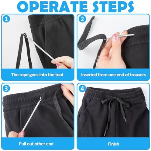 - 【Round Head Design】Our drawstring easy sewing drawstrings replacement tool adopts a carefully crafted round head design, which can smoothly pass through fabrics, ensuring that the drawstring will not be hooked or damaged when changing clothes.