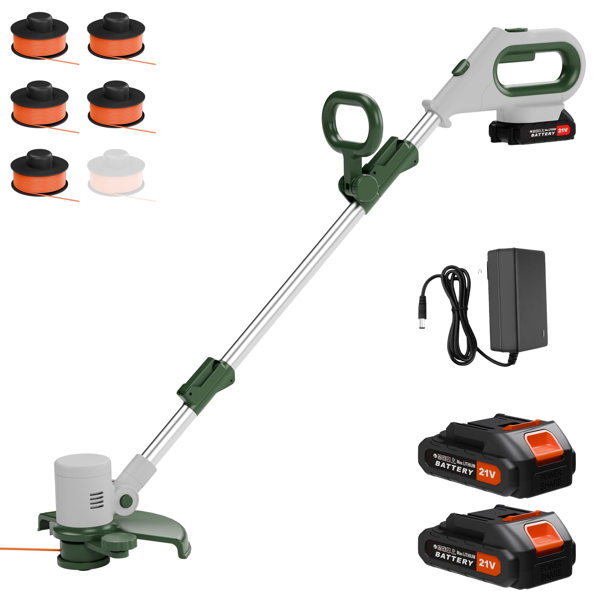 - Variable Speed Trigger: Control the cutting speed for optimal performance based on the thickness of the grass, enhancing efficiency and battery life. 9000RPM no-load speed, 4.85lbs Ultra-lightweight Fuselage, 12" cutting path, 0.065" line diameter, 16ft spool length
