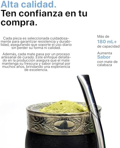 - NATURAL CALABAZA INTERIOR FOR AUTHENTIC FLAVOR – Unlike stainless steel or silicone cups, this traditional gourd naturally enhances the flavor of yerba mate over time. The porous interior absorbs the essence of the leaves, gradually curing to create a richer and deeper taste with each use. This is the mate experience as it was meant to be – bold, full-bodied, and steeped in tradition.