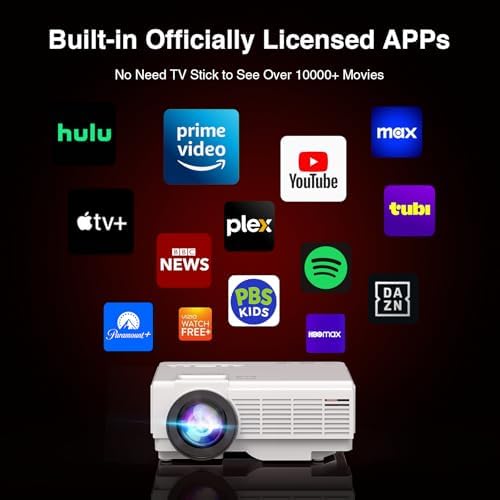 - 【Built-in Netflix Officially Licensed, Do Not Need TV Stick to See Latest Movies】This smart mini projector supports over 1,000,000 videos from certified apps, Netflix, Prime Video, allowing you to watch your favorite shows and movies anytime. Need more apps? Just download them from home page without a TV stick anymore. This Netflix projector make your home become a large home cinema without go out.