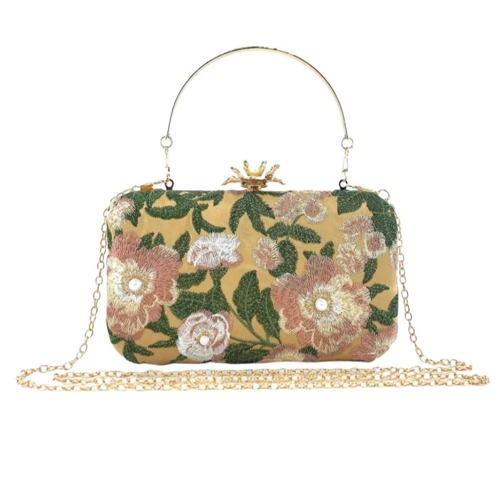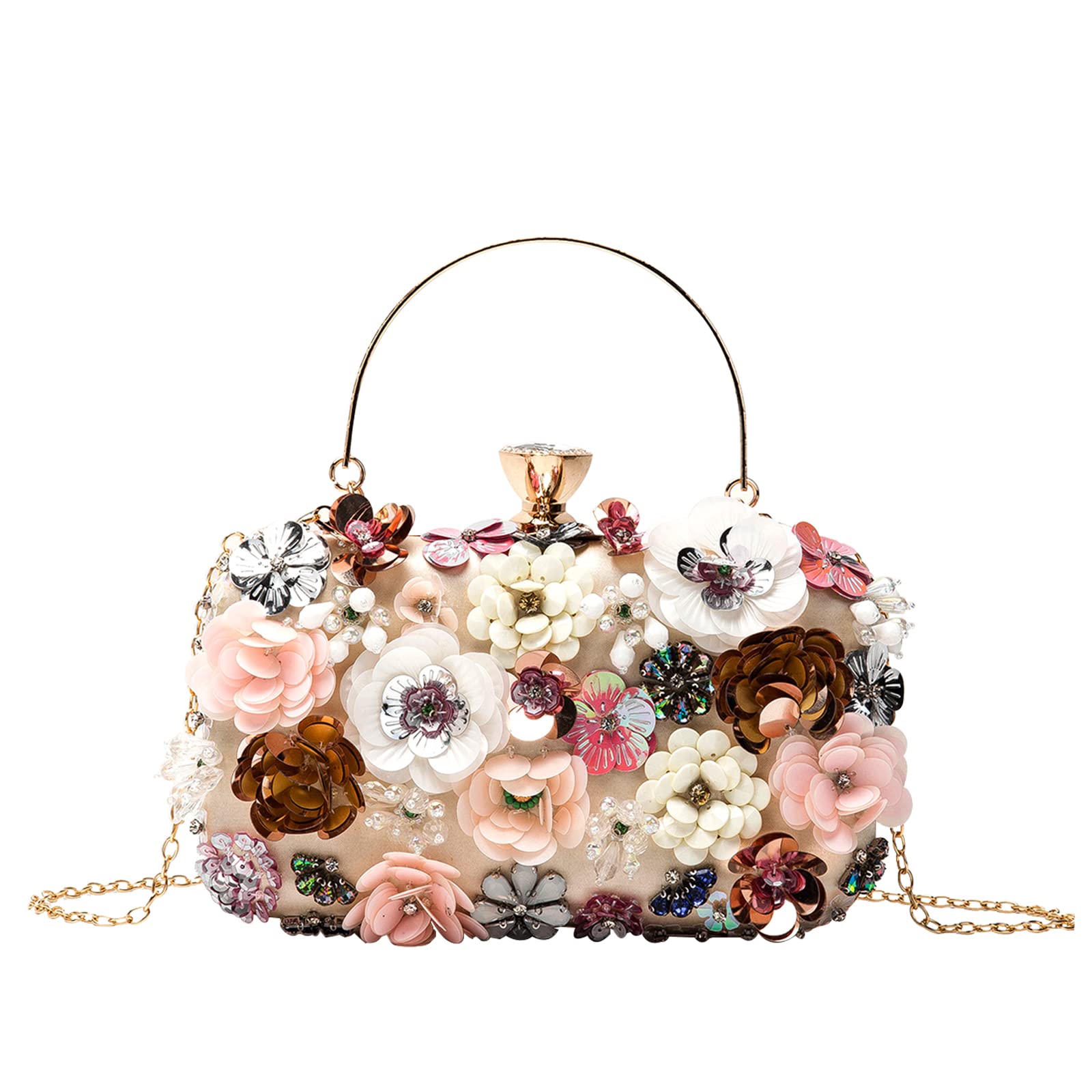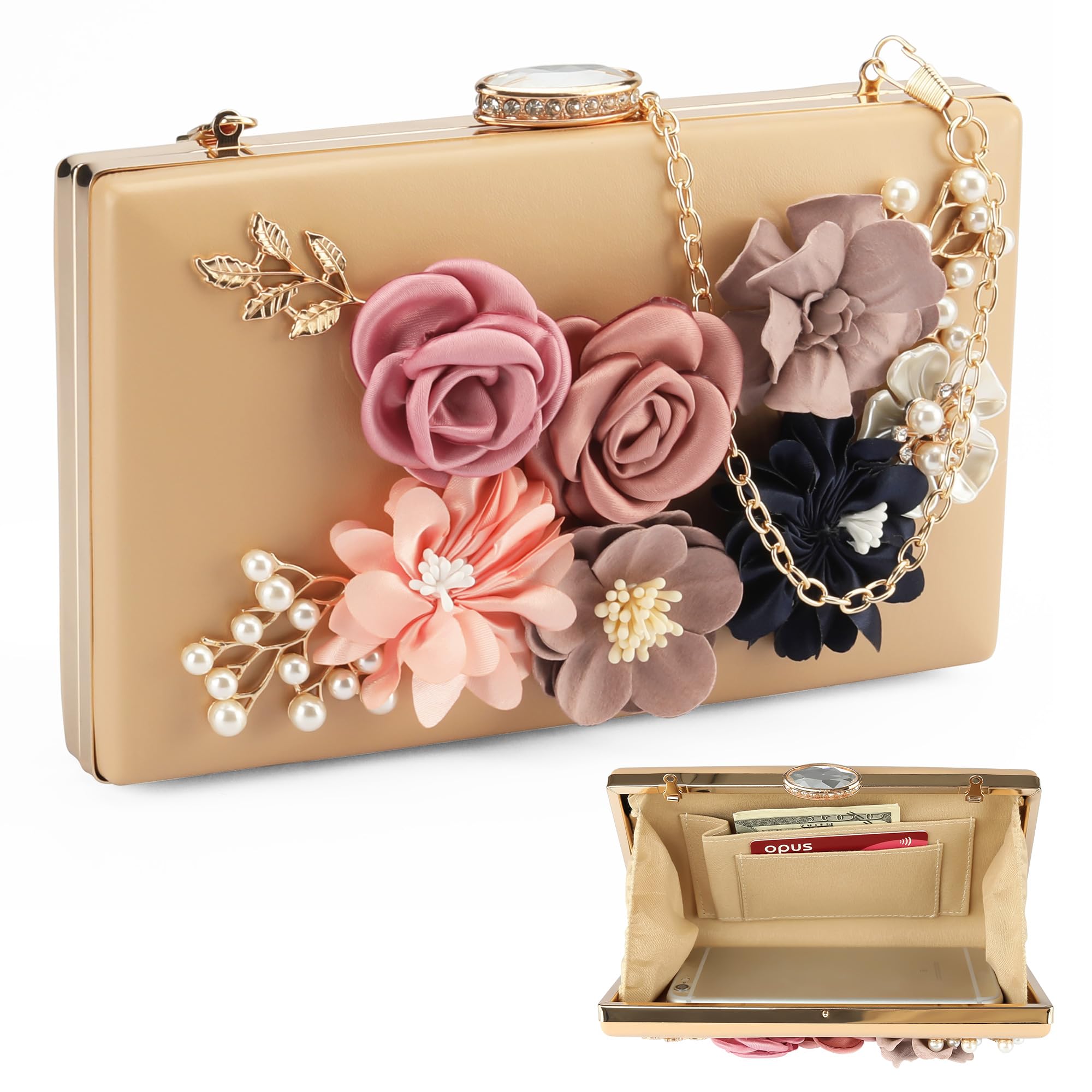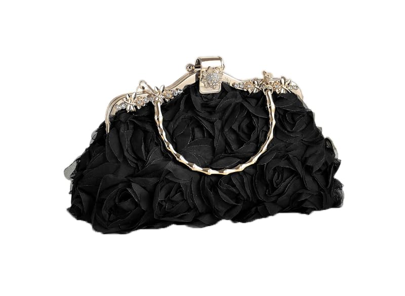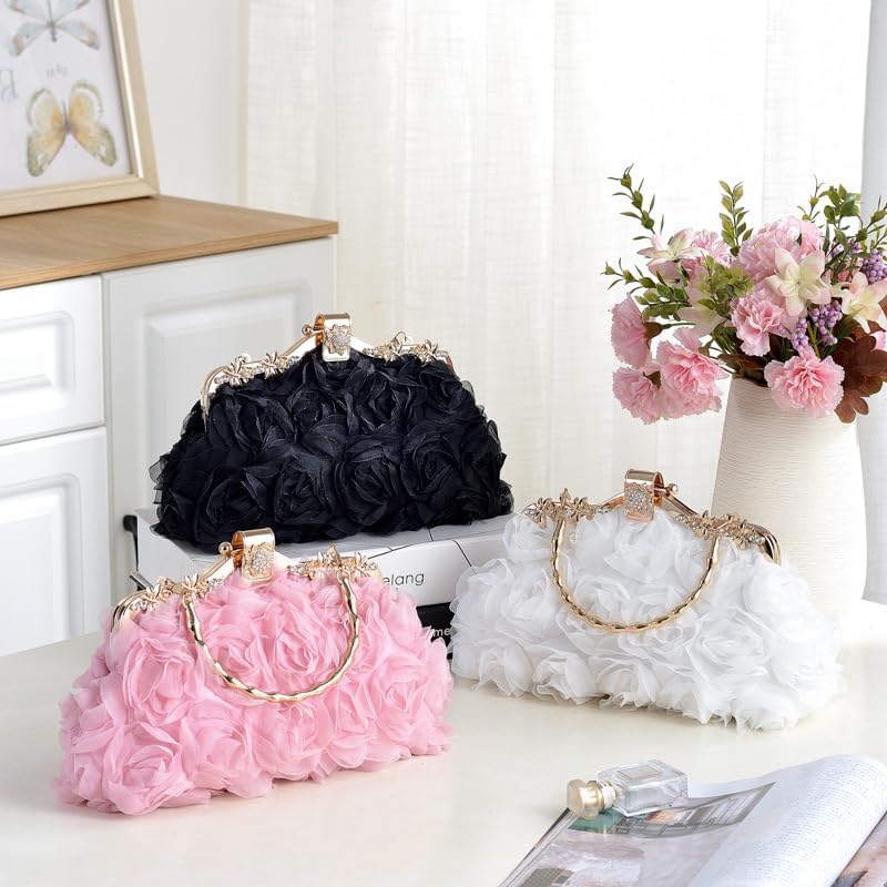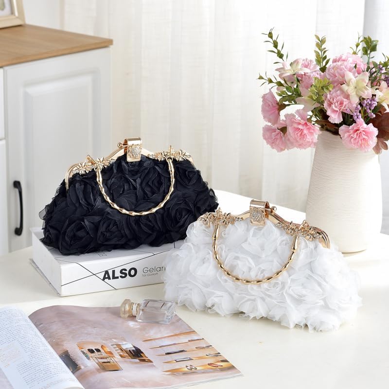 Floral Lace Evening Clutch Purse, Rose Wedding Handbag with Chain Strap, Bridesmaid Dress Bag