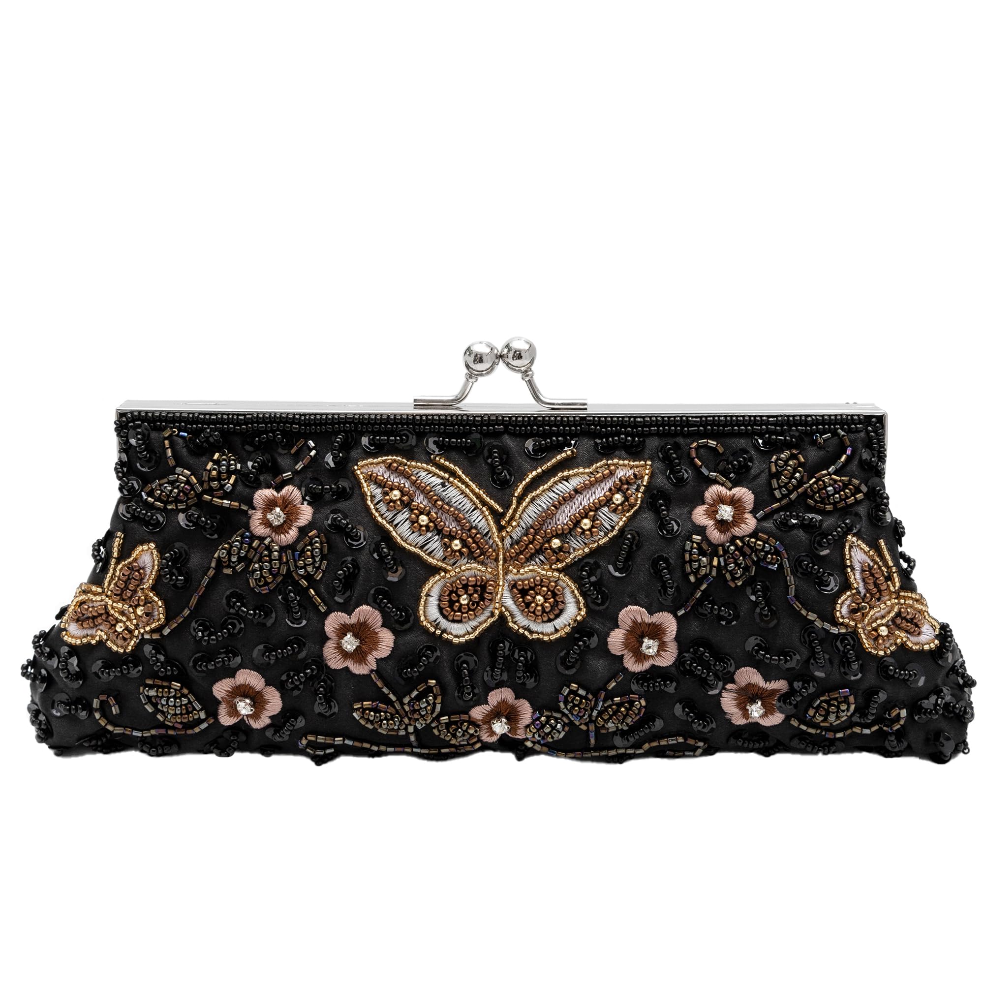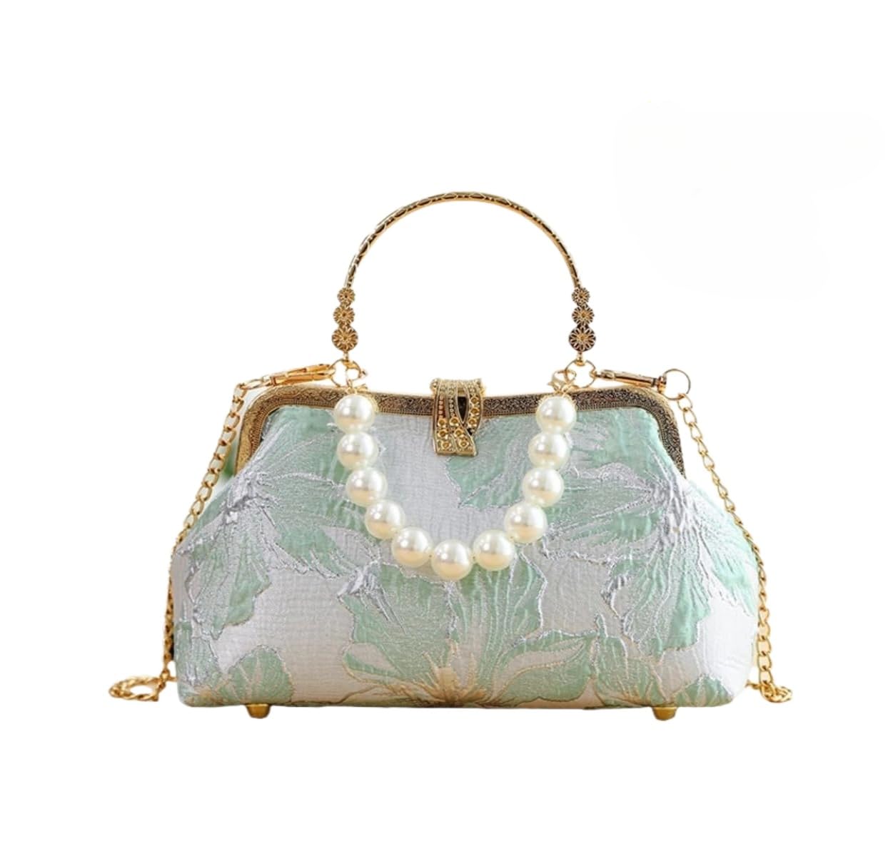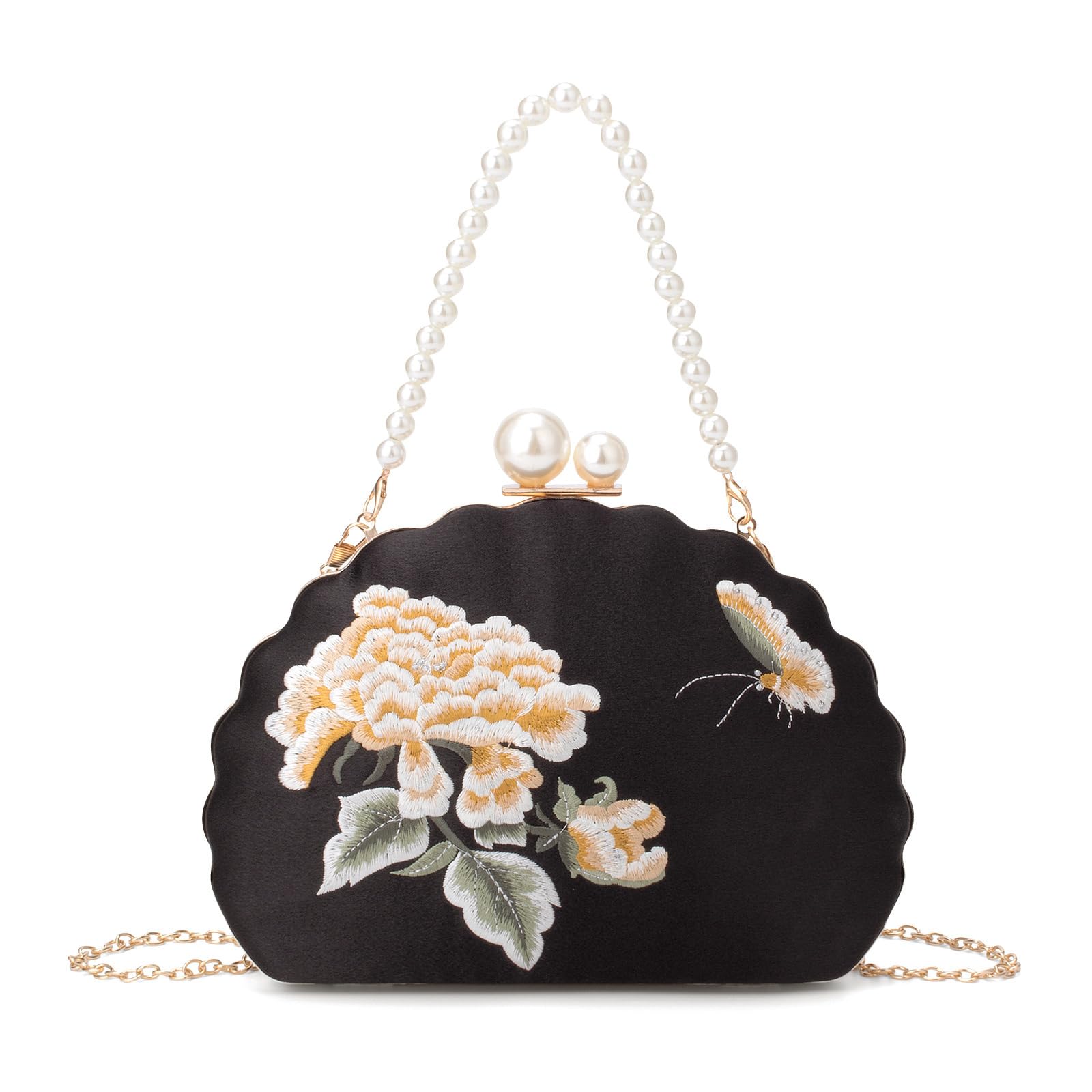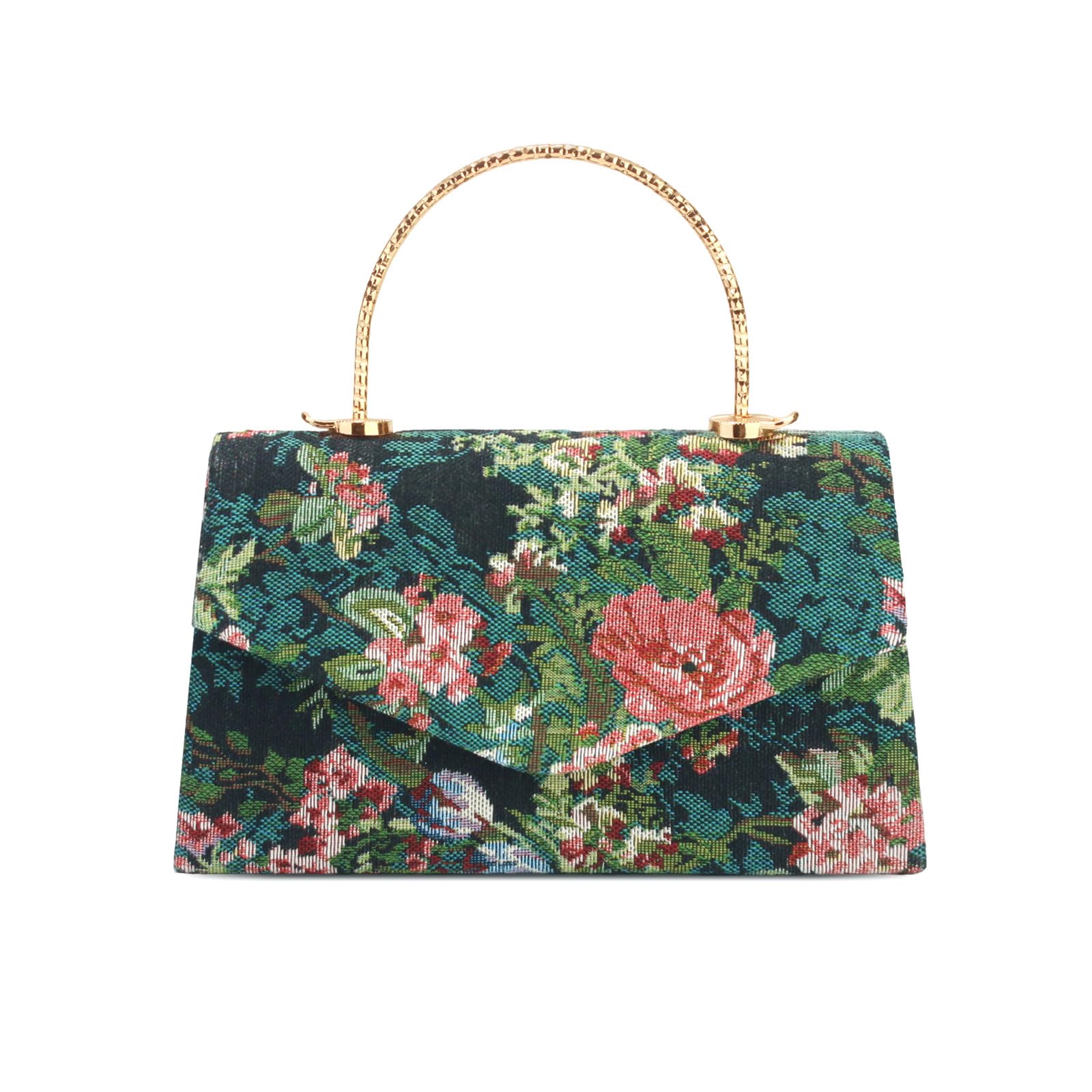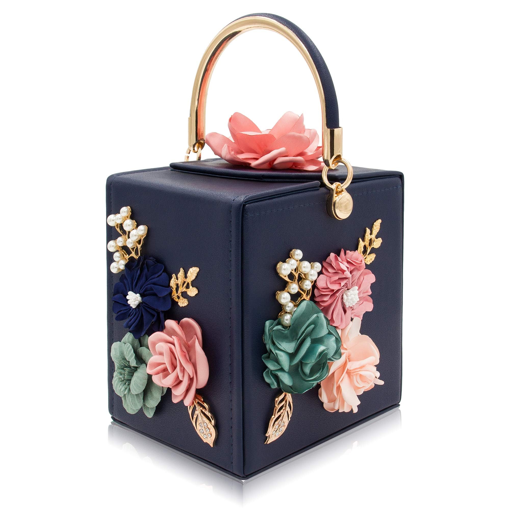 Floral Lace Evening Clutch Purse, Rose Wedding Handbag with Chain Strap, Bridesmaid Dress Bag