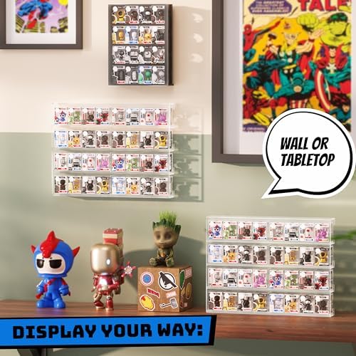 - Easy Setup, Endless Fun: WINKINE Bitty Pop shelf is easy to assemble and install. Its dual-sided slide-in design lets you effortlessly swap figures, whether you hang it on the wall or place on the table the compact design saves space