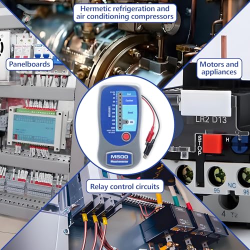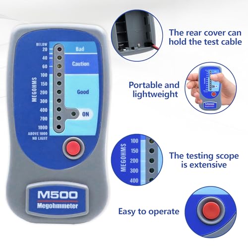 - Precise Insulation Testing, Ensure Electrical Safety:The M500 megohmmeter (compatible with Supco M500) measures insulation resistance up to 1000 megohms at 500V AC. Works for motors, transformers, HVAC systems,quickly detects defects. A must for pros/DIYers using hvac tools